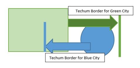 Residents living in the GREEN city can walk into BLUE town and beyond, but people living in BLUE can only walk until the BLUELINE in GREEN CITY/2,000 Amos